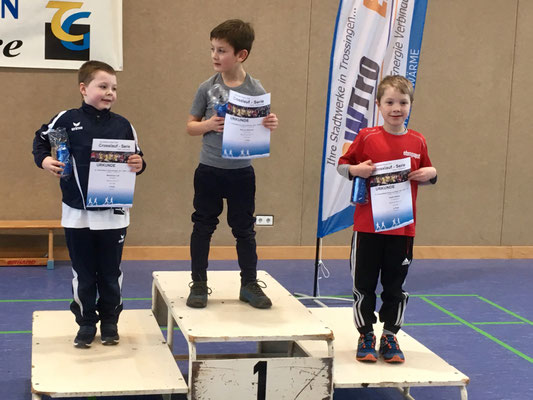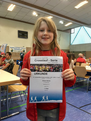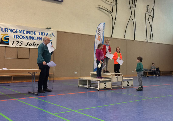 Die "Musikstadt" Trossingen war Austragungsort des dritten Laufs der Cross-Serie „Zoller-Schwarzwald 2017/2018“. Auf dem Wiesengelände rund um den Sportplatz des TG Trossingen waren verschiedene Strecken zu laufen. Bei fast frühlingshaftem Wetter gab es für die 8 Starter, darunter 4 Schüler, unseres Lauftreffs keine nassen Füße und keinen Schnee weit und breit. So gingen alle Teilnehmer gut motiviert und bei bester Laune ins Rennen. Den Anfang machten die Kleinsten, W08 & M08, Anna Brand und Cedric Herms. Beide liefen ein super Rennen und landeten auf den Plätzen 1 und 2!!! Anna siegte bei den Mädels und Cedric wurde "Vize" bei den Jungs! Auch die Schüler M10 waren im gleichen Rennen am Start. Auch hier zeigte Merlin Herms eine gute Leistung und lief ebenfalls als Dritter auf das Siegerpodest. Das Quartett der Schüler vervollständigte Chiara Herms bei der W12. Sie wurde als 6. im Ziel gewertet. Heute waren für Chiara die vorderen Plätze nicht greifbar, aber mit der gezeigten Leistung kann es beim nächsten Crosslauf noch besser aussehen!