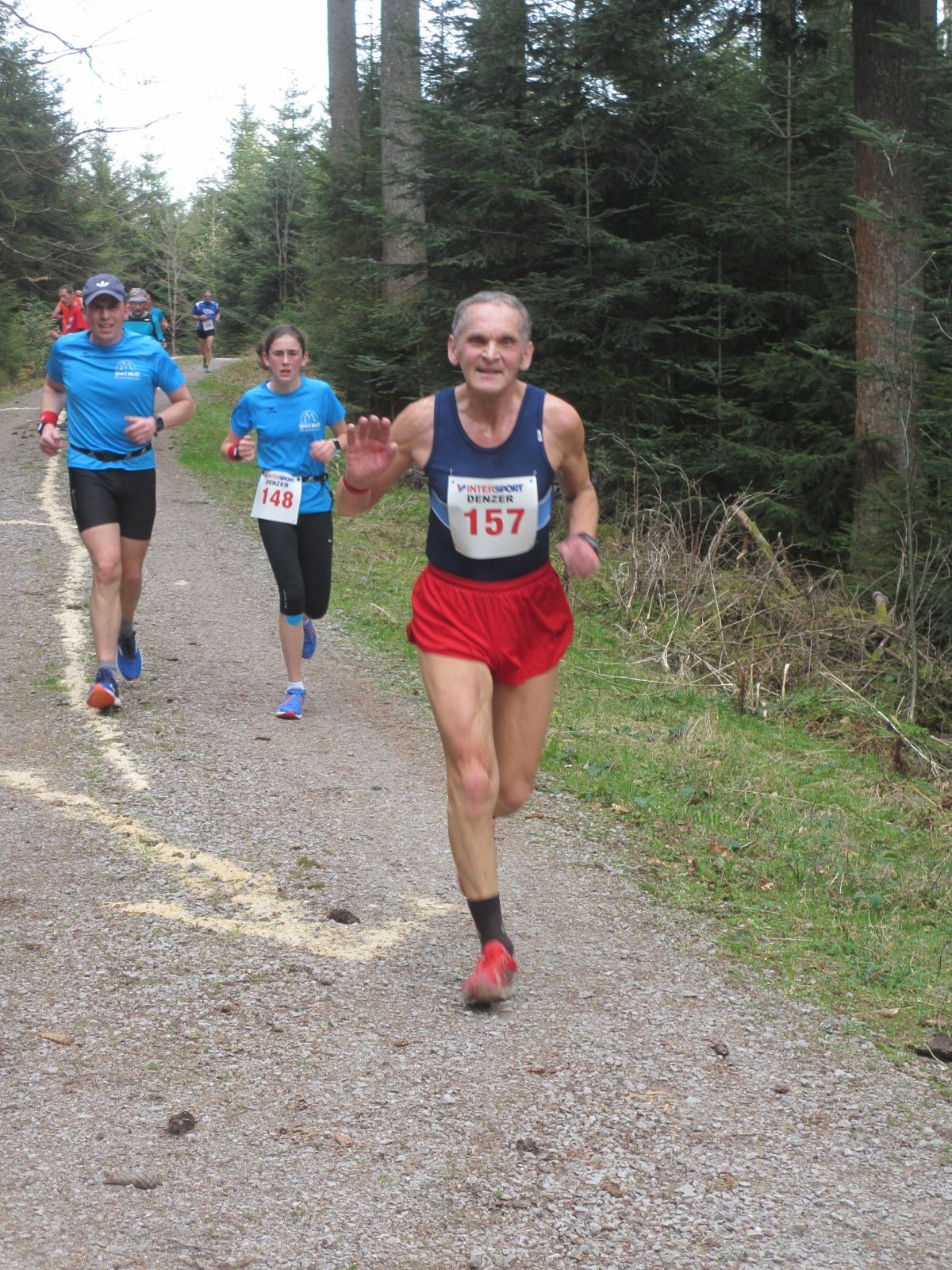 Bei den Damen war Hannah Bächle am Start. Für sie war es das erste Rennen nach einer Zahn-OP. Dementsprechend lief sie sehr verhalten und ging das Tempo der Konkurrentin nicht mit. Als zweite im Damenfeld und Siegerin der WU20 war Sie dennoch mehr als zufrieden. Bei den Herren lief der als Favorit auserkorene Manfred Kiene zum Tagessieg und wurde ebenso Sieger in der M40. Er hatte mit Dieter Förnbacher einen harten Widersacher und konnte sich erst in der letzten Runde absetzen. Dieter belohnte sich mit dem zweiten Gesamtplatz und dem Sieg in der M50. Für die beiden M60er, Berthold Seelinger und Reinhold Walter, war es ein willkommener Test für die kommenden DM-Rennen. Mit einigen Trainingskilometer und schweren Füßen liefen Sie gleimäßig ihre Runden. Berthold konnte den Sieg verbuchen und Reinhold wurde Dritter. Das Trio mit Manfred, Dieter und Berthold wurden zusätzlich noch Sieger in der Mannschafts-Gesamtwertung!