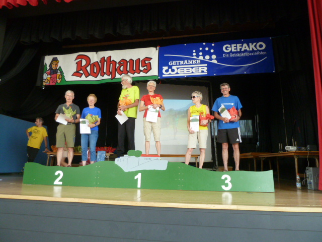 Nach dem Finish und einem Blick in die Runde war es dem Herrenteam im Zielbereich schon klar, dass es zu der angestrebten Medaille als Team nicht klappen würde. Nach der Auswertung in der Mannschafts-Gesamtwertung M60/M65 belegte man dann den 6ten Platz. So wurde bei der Siegerehrung nur die SILBERMEDAILLE von Elfriede gefeiert.