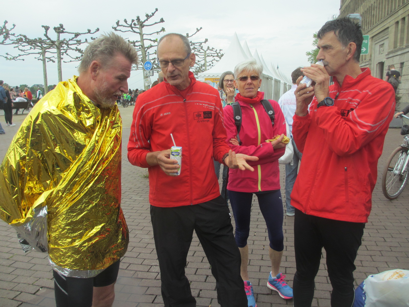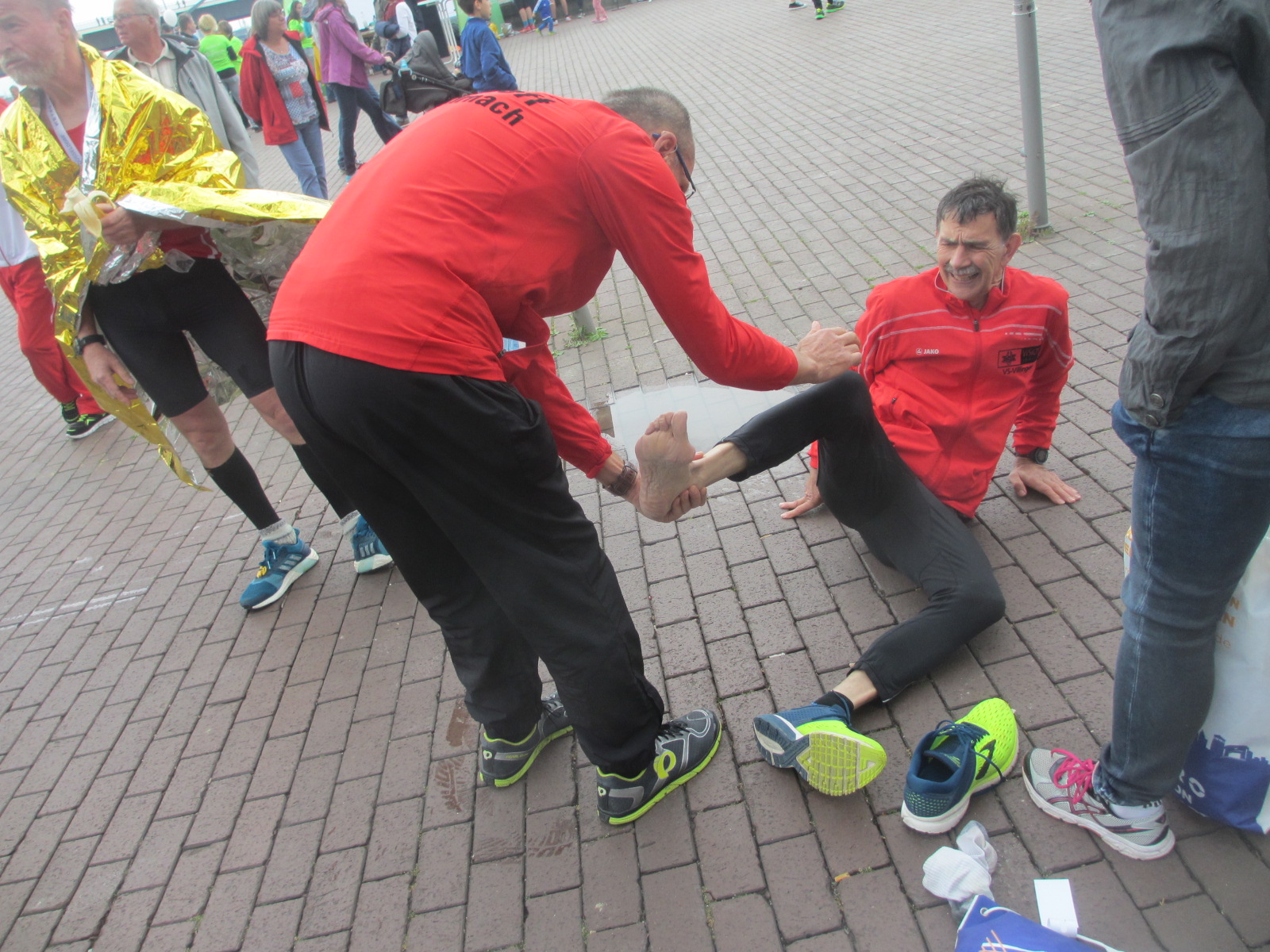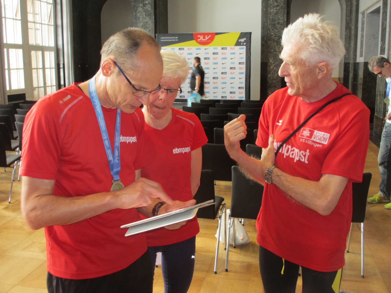 Leider war die Mannschaftsbesprechung am Donnerstag wieder einmal leicht unbefriedigend. Klar war, dass Elfriede im Halbmarathon in die Mannschaft der W60-Damen runtergemeldet wird, da in der W60 nur 2 Frauen gemeldet waren.
