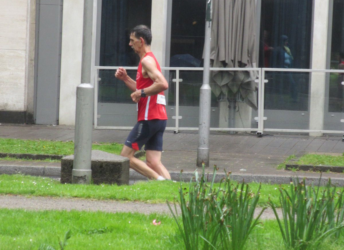 Reinhold Walter lief nach der krankheitsbedingten Absage von Lutz Kuhardt als 3. Mann für das M60 Team. Er hatte sich gut vorbereitet und wollte deutlich unter 4h laufen, er suchte und fand sein Tempo, hatte keine Probleme mit dem Regen und den Pfützen. Teilte sich seine Kräfte gut ein, steigerte sich von Kilometer zu Kilometer, lief in 3:40:15 h ins Ziel, eine Zeit die er seit Jahren nicht mehr gelaufen ist, und wurde 8. in der Altersklasse M60 und 210. im Gesamteinlauf der Männer-DM.